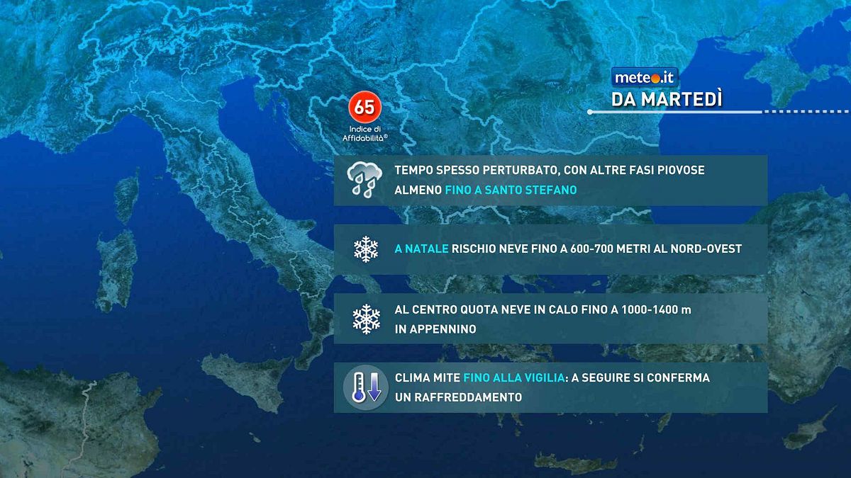 Meteo: settimana di Natale segnata da piogge, neve e freddo in aumento. La tendenzaMeteo: settimana di Natale segnata da piogge, neve e freddo in aumento. La tendenza20 Dic 2025 - 10:37