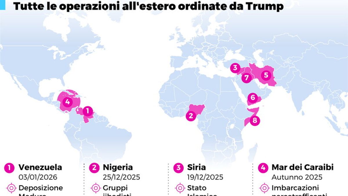 GLI AGGIORNAMENTI IN TEMPO REALEVenezuela, Corte suprema "incorona" la vice di Maduro | Rubio: "Non è legittimo" | Trump: "Rodriguez faccia cose giuste o pagherà prezzo alto"LIVE04 Gen 2026 - 18:56Ultimi aggiornamenti04 Gen - 21:3921:39Processo a Maduro e la moglie in tribunale: in aula lunedì04 Gen - 20:1320:13Meloni sente Machado: "Arresto di Maduro apre pagina di speranza"VAI ALLA TIMELINE COMPLETAVAI ALLA TIMELINE COMPLETA