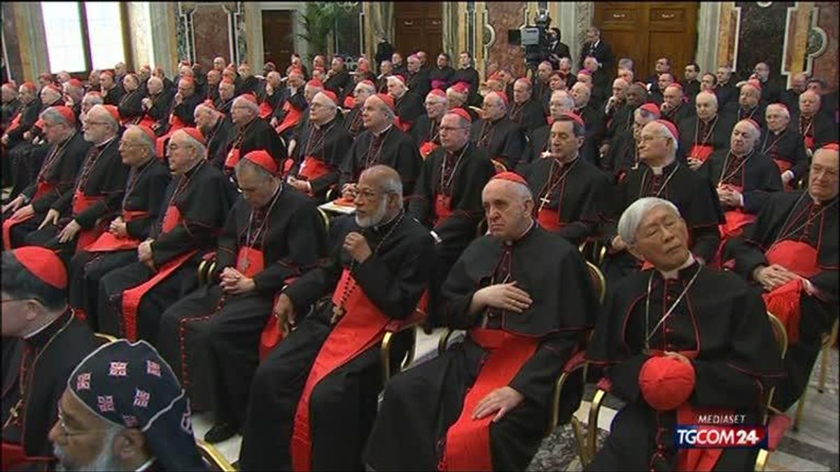"Il collegio dei cardinali sia come un'orchestra" - "Anche per me è stata una gioia camminare con voi in questi anni", ha detto il Papa dopo l'indirizzo di saluto del cardinale decano Angelo Sodano. "Il collegio dei cardinali - ha aggiunto - sia come un'orchestra in cui le diversità" possano portare ad "una concorde armonia". Benedetto XVI ha poi salutato in Sala Clementina tutti i cardinali personalmente. Molti i volti commossi, il Papa è apparso sereno e sorridente.