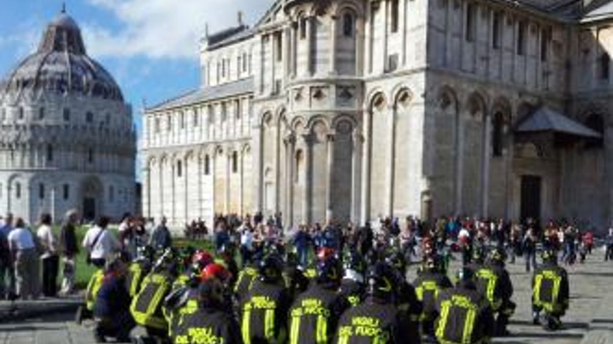 Cinquanta vigili del fuoco, aderenti all'Unione sindacale di base, si sono ritrovati oggi in "Piazza dei miracoli" a Pisa, per denunciare la "morte" del loro corpo nazionale, "per colpa delle polemiche di austerity". I pompieri, indossando le divise, si sono stesi a terra davanti a centinaia di turisti, e hanno fatto scendere due striscioni dalla Torre. "Il Governo - ha spiegato l'Usb - tenta di limitarci con blocchi di assunzioni, congelamento di contratti, innalzamento dell'età pensionabile e riduzione degli acquisti di automezzi". L'Usb ha poi concluso: "Noi vogliamo solo poter continuare a svolgere con professionalità il nostro lavoro al servizio dei cittadini, pertanto chiediamo di essere ascoltati e pubblicizziamo una vera riforma del settore protezione civile, con al centro i Vigili del Fuoco, così da poter garantire il soccorso in Italia ed evitare il disperdersi di fondamentali risorse economico - finanziarie".
