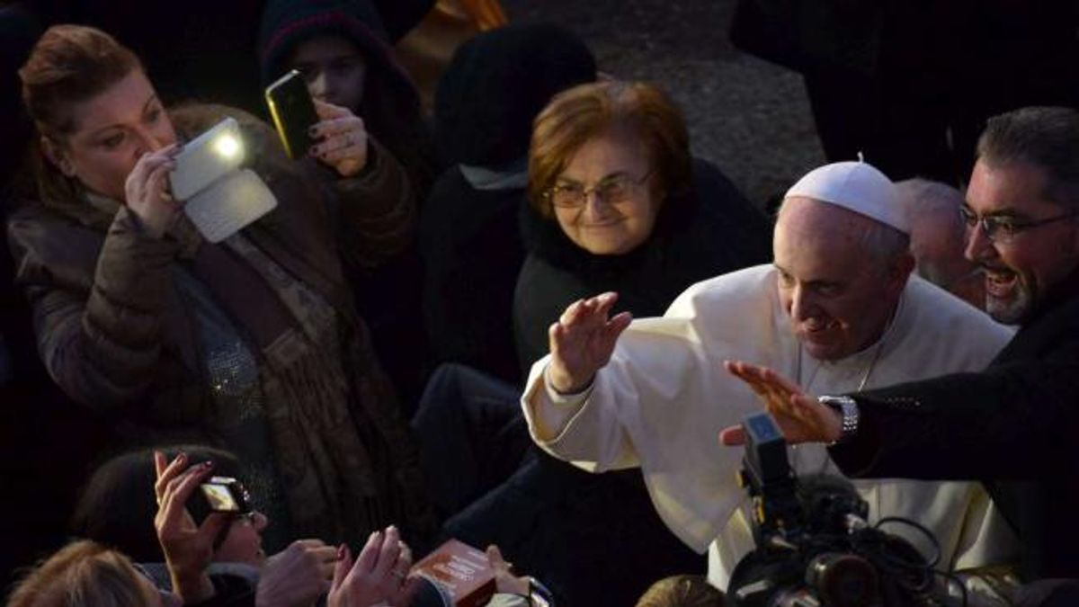 Papa Francesco ha visitato la parrocchia romana di Sant'Alfonso Maria de' Liguori dove è stato allestito un presepe vivente con circa 200 figuranti. Ad attenderlo centinaia di persone. Il Pontefice ha salutato quanti più parrocchiani è riuscito a raggiungere. Alcuni "pastori" gli hanno messo anche sulle spalle un agnellino. Il bimbo di due mesi, che interpreta Gesù, si chiama come il Papa, Francesco, ed è stato battezzato poco prima della visita.
