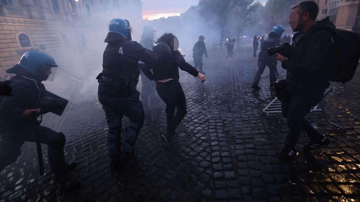 La polizia ha azionato nuovamente e a più riprese gli idranti per disperdere i violenti. Durante i disordini è stato arrestato il flagranza un manifestante che avrebbe aggredito un agente. Nel bilancio anche la vetrina infranta di un supermercato in via Labicana.