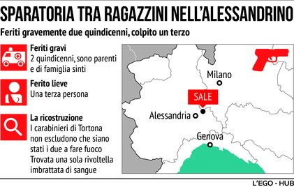 Due minorenni sono rimasti gravemente feriti in una sparatoria avvenuta a Sale (Alessandria), nei pressi di un'area dove dimorano famiglie sinti. Uno dei ragazzi è stato trasportato in ospedale con mezzi propri nel capoluogo di provincia, mentre l'altro a Novi Ligure. Entrambi, membri di una famiglia di giostrai, sono in pericolo di vita. Indagano i carabinieri.