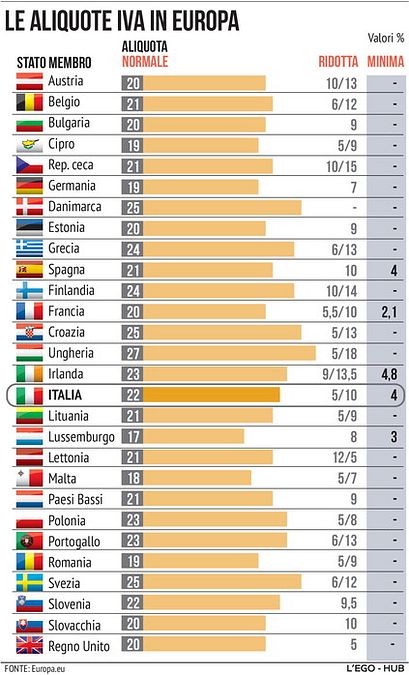 Le aliquote Iva in Italia e in Europa