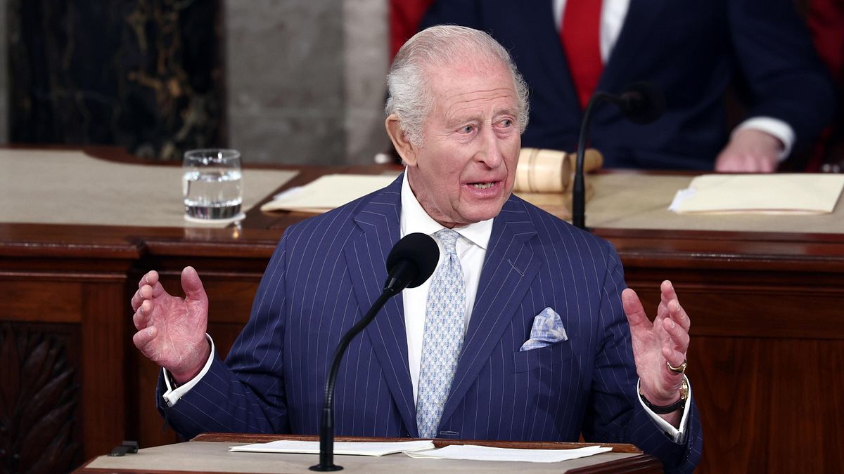 Nella foto Donald Trump e re Carlo ridono insieme poco dopo il discorso del tycoon