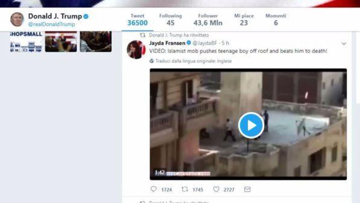 Il presidente degli Stati Uniti, Donald Trump, ha attaccato Theresa May su Twitter, che lo aveva criticato per aver pubblicato tre video anti-islamici diffusi dall'estrema destra britannica. Peccato, però, che non abbia indirizzato il suo messaggio al primo ministro del Regno Unito, che ha l'account @theresa--may ed è seguita da più di 400mila persone, ma a @theresamay, una signora di Bognor Regis, nella contea inglese di West Sussex, con soli sei followers.