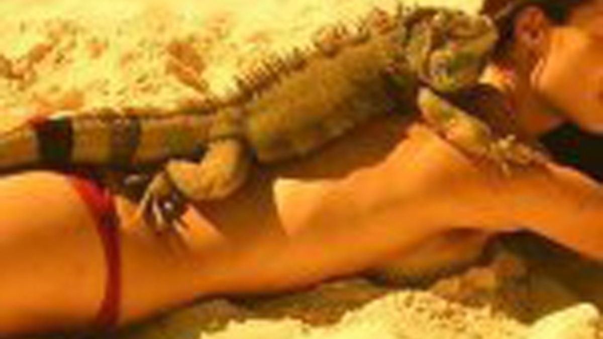 La Pellegrinelli posa con l'iguana in Messico