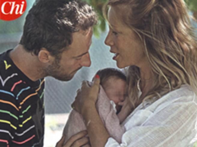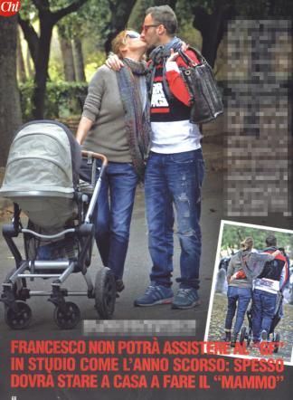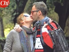 Labbra che non riescono a resistere lontane. Ecco Francesco Facchinetti e Alessia Marcuzzi mentre passeggiano per le vie di Roma con la piccola Mia nella carrozzina.