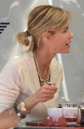 Appuntamento nel pieno centro di Milano per Martina Colombari che pranza con un'amica al ristorante Emporio Armani Caffè. Vestita di bianco e nero, con un ampio gonnellone lungo fino ai piedi si accomoda al tavolo per ordinare il suo pranzo: una bella insalatina leggera... degno pasto per un'ex Miss Italia rimasta nel corso degli anni sempre in forma. Anche se sappiamo che pure a lei piace sgarrare.