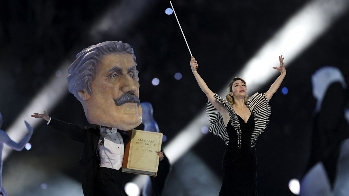 In primis, va in scena un tributo alla bellezza italiana e allo scultore Antonio Canova, massimo esponente del Neoclassicismo e figura chiave nella costruzione di un'idea di bellezza che ha influenzato l'arte occidentale in tutto il mondo. Lo stadio diventa un museo vivente e sul campo da gioco è comparsa una costellazione di teche espositive che accolgono 70 ballerini dell'Accademia del Teatro alla Scala, uomini e donne immobili come statue, sospesi in una dimensione senza tempo. Al centro della scena, all'interno di una delle teche espositive, prende avvio un duetto: è il racconto di Amore e Psiche, una delle opere più celebri di Antonio Canova, a interpretarli sono i ballerini Claudio Coviello e Antonella Albano. Poi le note dei grandi della musica lirica italiana, da Giuseppe Verdi, Giacomo Puccini e Gioacchini Rossini, interpretati da tre attori con grandi maschere di cartapesta. Direttrice d'orchestra d'eccezione, Matilda De Angelis. Durante lo show, anche un omaggio a Raffaella Carrà.